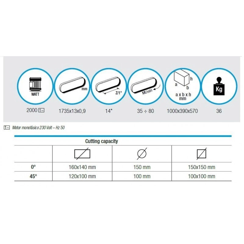 - Puissant 2000 W moteur monophasé équipée d’un régulateur de vitesse électronique numérique « Vitesse constante » avec ampérométrique dispositif de limitation